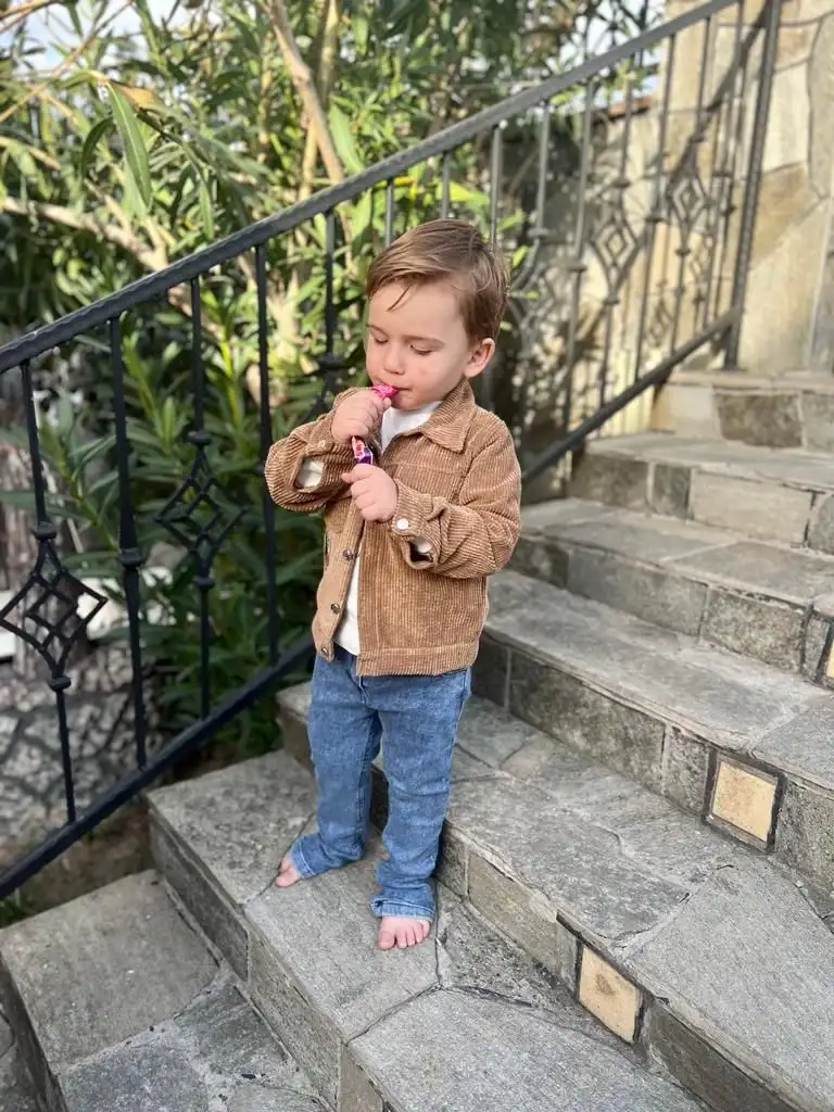 3-4-5 Yaş Fitilli Kadife Ceket Kot Pantolonlu 3lü Kız Erkek Çocuk Takımı Kiremit