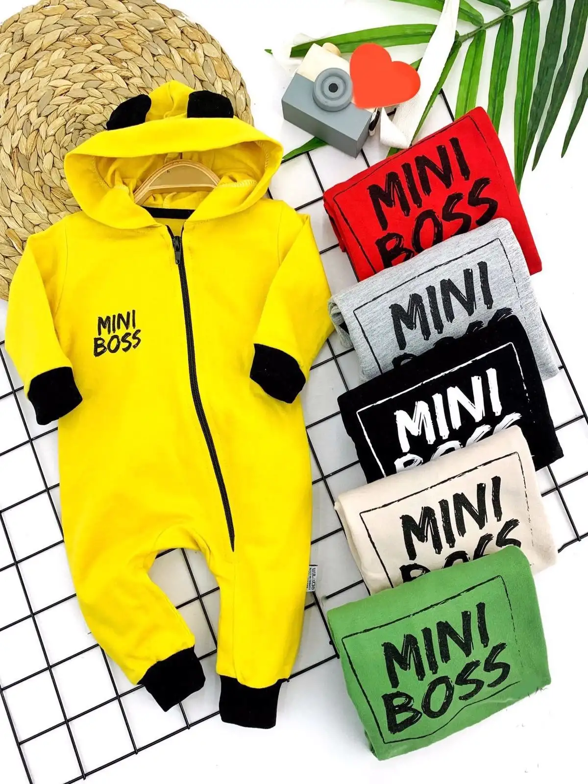 3-6-9-12 Ay Boydan Fermuarlı Kulaklı Kapşonlu Kız Erkek Bebek Tulumu Sarı