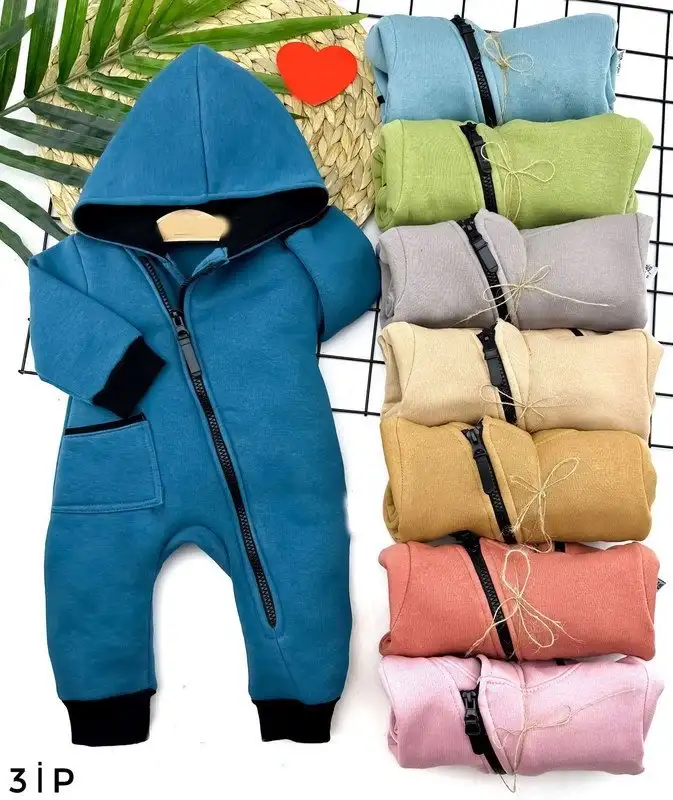3-6-9-12 Ay Kapşonlu Ef Boy Fermuarlı Tek Cepli Uzun Kollu Kız Erkek Bebek Tulumu Gri
