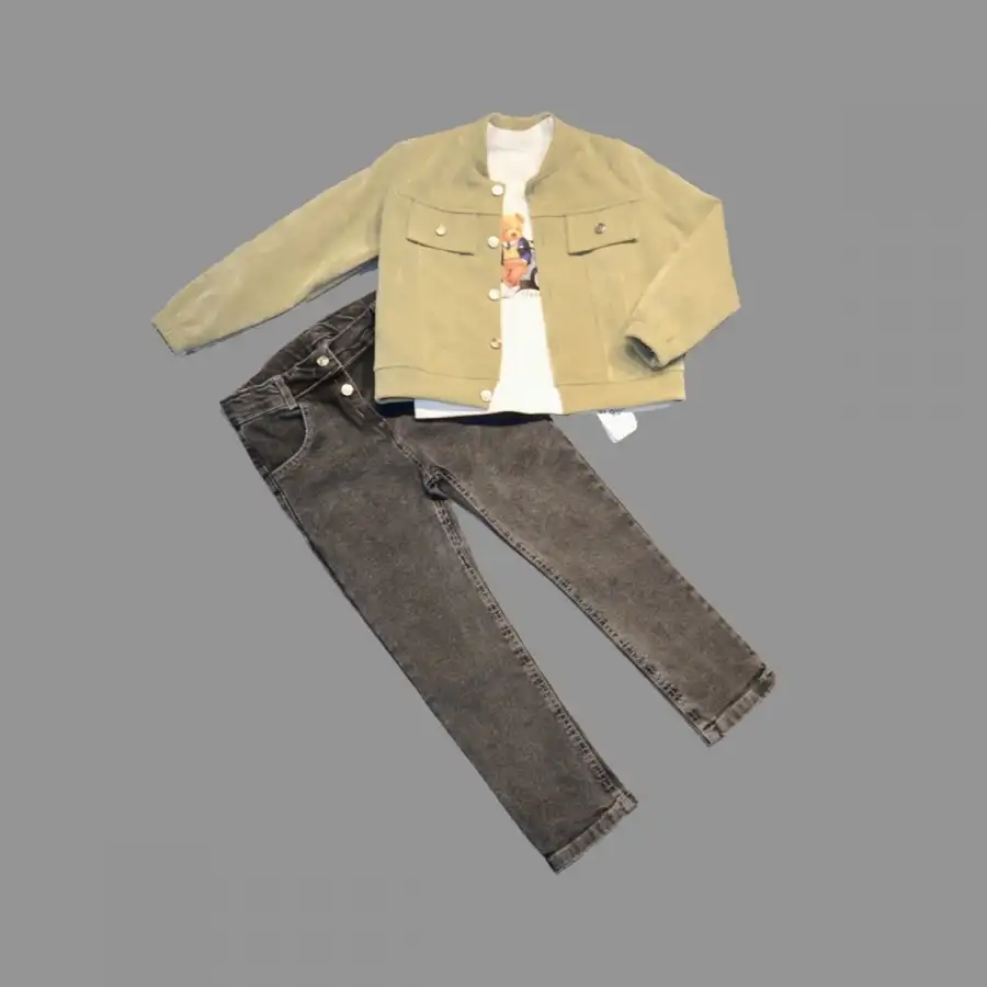 4-5-6 Yaş Kot Pantolonlu Nubukceketli Uzun Kollu Penye Sweat 3lü Erkek Çocuk Takımı Su Yeşili