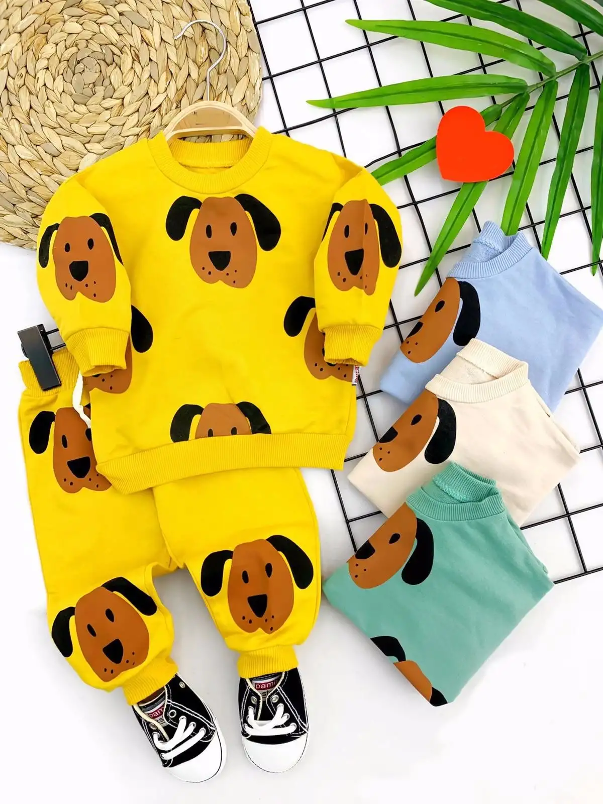 9-12-18-24 Ay Köpekcik Baskılı 2li Kız Erkek Bebek Takımı Yeşil