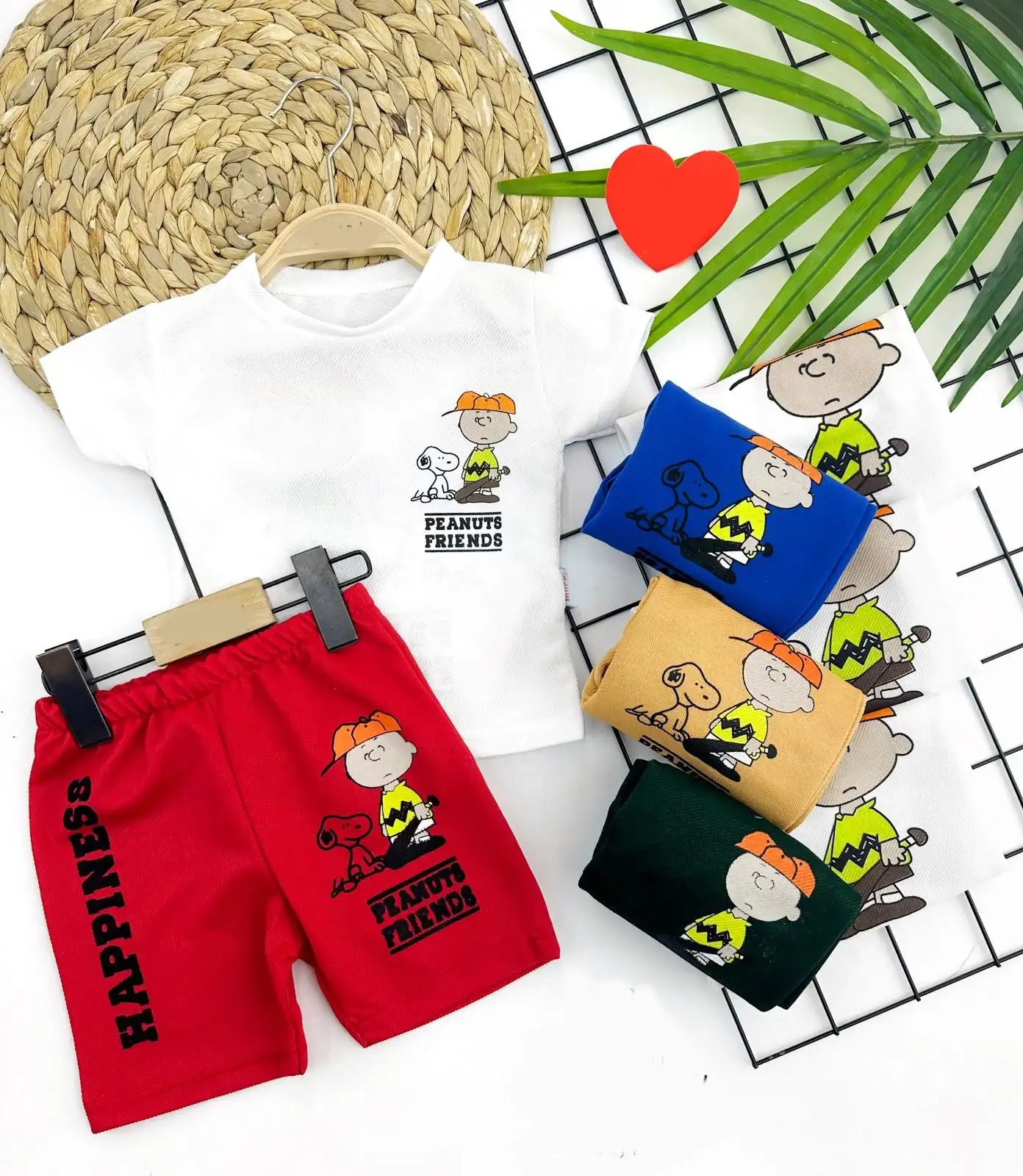 9-12-18-24 Ay Tişört-şort Baskılı Yazlık 2li Erkek Bebek Takımı Krem