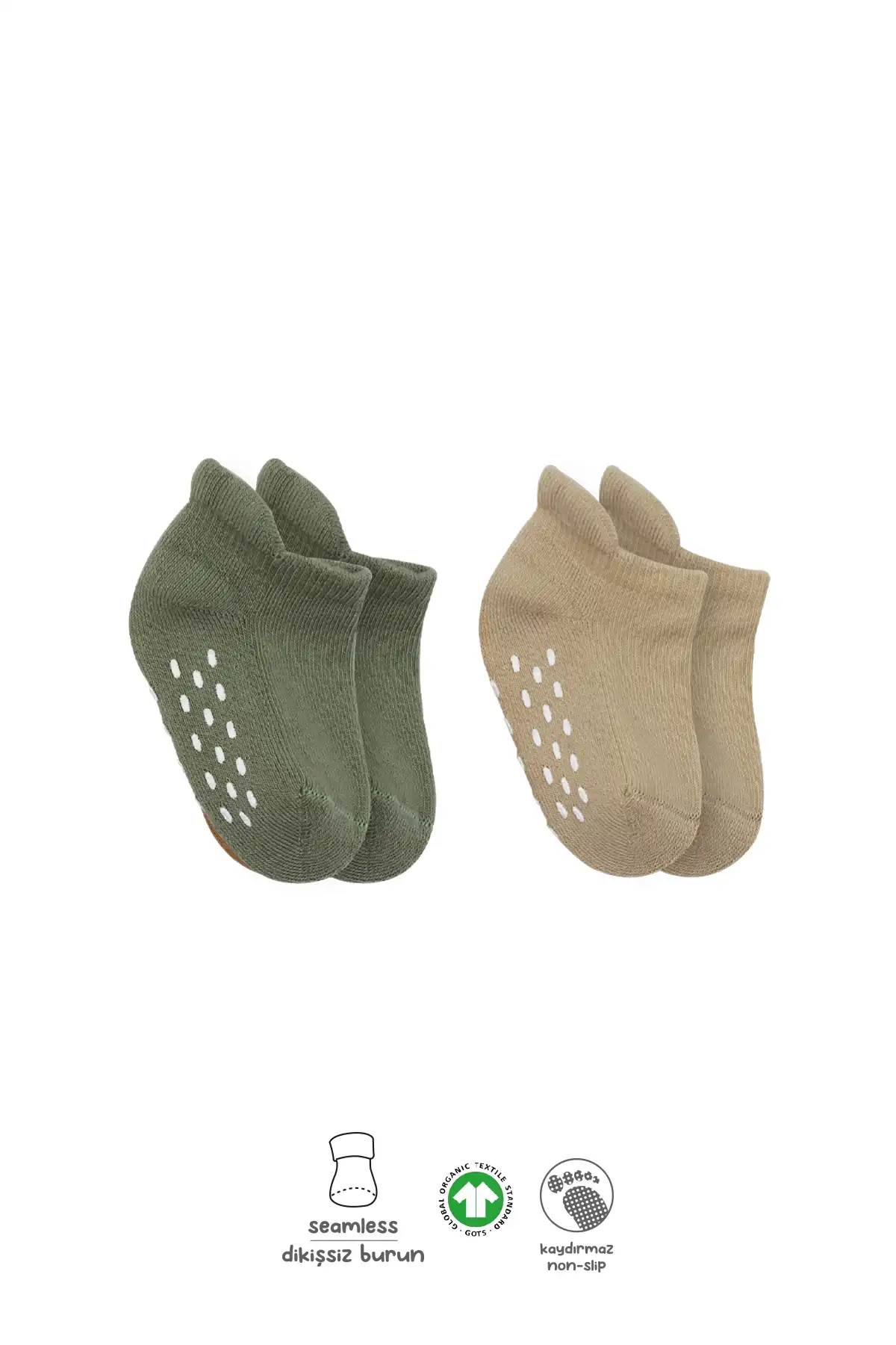 2'Li Altı Havlu Sneakers Kaymaz Çorap 20501 Nil Bej