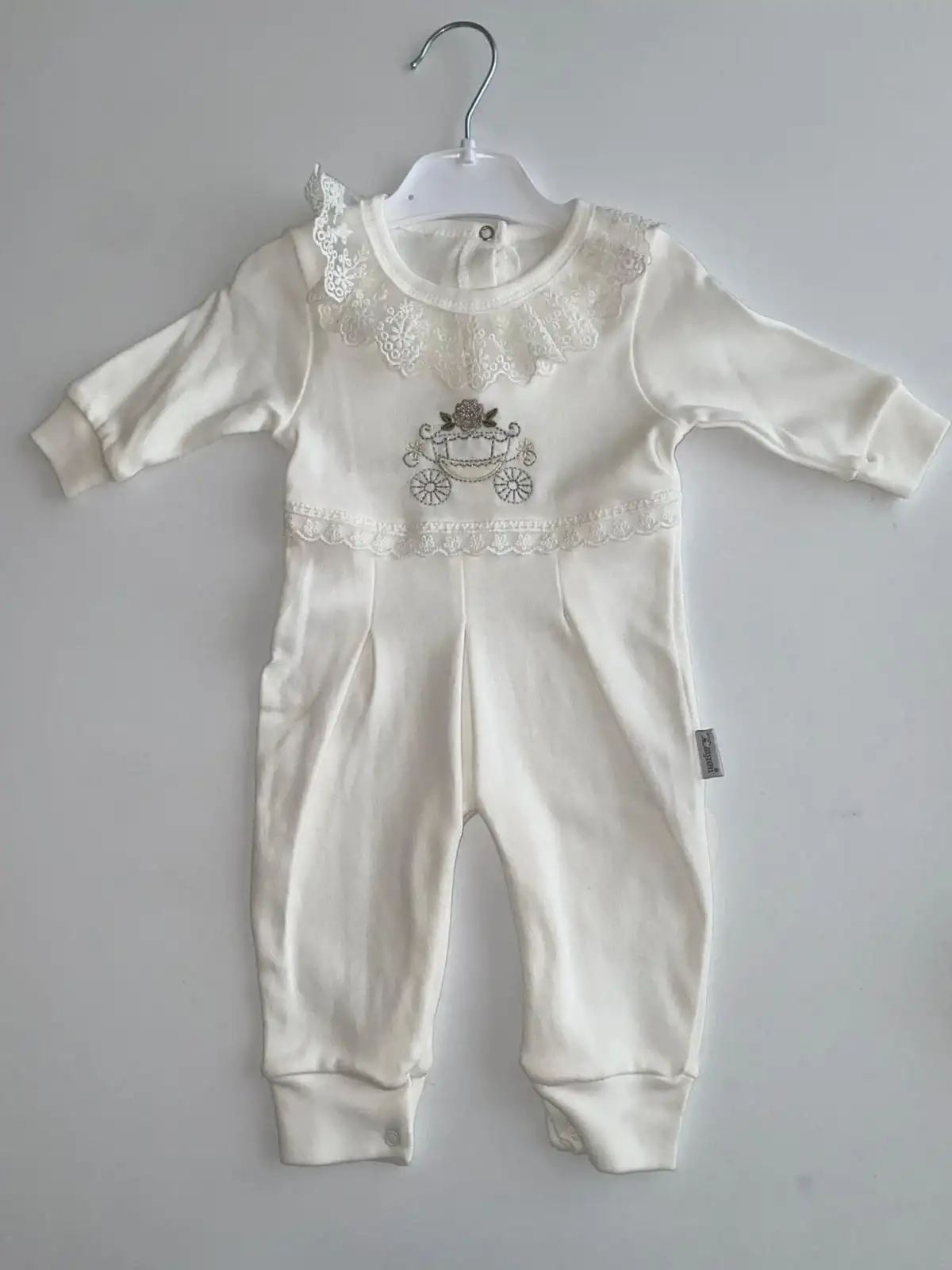 Bebeğinizin şıklığını ve konforunu bir arada sunan Çiçekli Araba Nakışlı Dantelli Kız Bebek Tulum ve Bere Seti, zarif tasarımıyla öne çıkar. Özenle işlenmiş çiçekli araba nakışı ve dantel yaka detayı, ürüne hem sevimli hem de premium bir görünüm kazandırır.