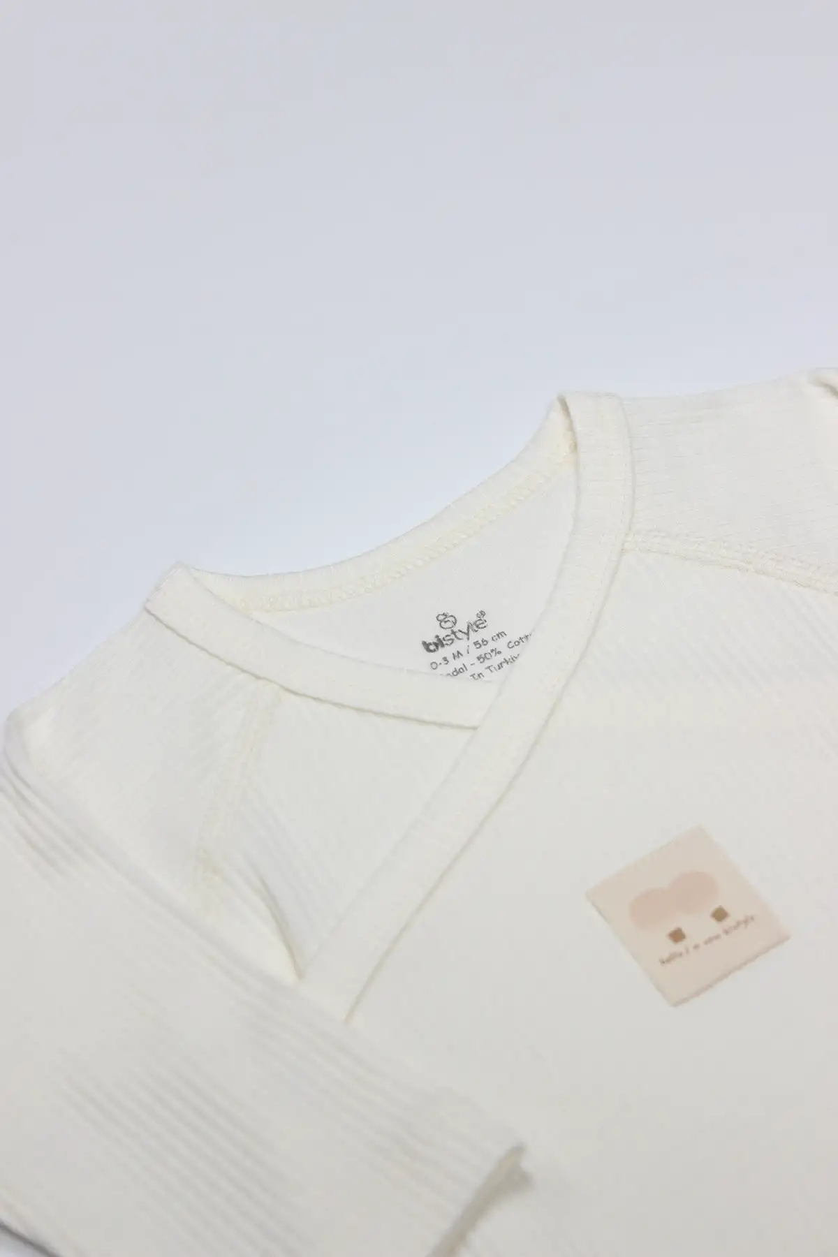 Bistyle Organik Natural Basic Style Kruvaze Uzun Kol Body BS17102 Beyaz