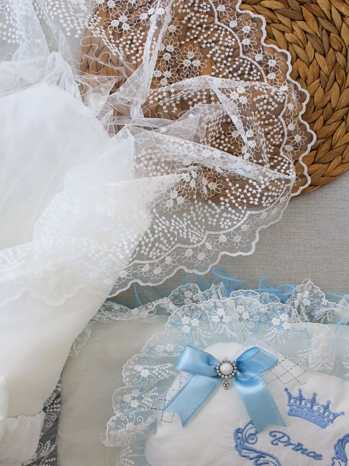 Yenidoğan Nil Taç Nakışlı Kundaklı Trilüks 3lü Alt Açma Seti Mavi